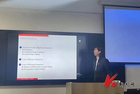 交流中,辽科大经法学院院长郭浩淼介绍了经法学院国际经济与贸易、金融和金融科技三个专业的发展现状、主要研究方向及近几年取得的主要研究成果。Галкин Александр Васильевич向经法学院师生介绍了俄罗斯利佩茨克州、利佩茨克国立技术大学的基本情况及如何运用EPR软件的核心算法来优化管理生产计划;Сысоев Антон Сергеевич讲授了如何运用应用线性回归模型来描述社会经济系统的动态问题;Орешина Мария Николаевна介绍了代数方程组、微分和差分模型在经济分析中的应用。与会的经法学院师生与三位俄方教师就相互关心的学术问题进行了深入的交流互动。