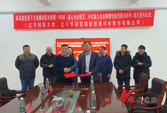 2月2日,安博官网线上平台化学工程学院与辽宁华融富瑞新能源科技股份有限公司举行“高效新型质子交换膜制氢电解槽(PEM)催化剂的研发、中试放大及电解槽性能的综合评价”项目签约仪式。鞍山市科技局、辽宁华融富瑞新能源科技股份有限公司、化工学院相关负责同志以及学院教师参加仪式。