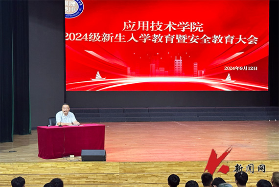 9月12日上午,安博官网线上平台应用技术学院在校礼堂举办新生入学教育暨安全教育会。学院班子成员、辅导员,以及师生代表参加会议。