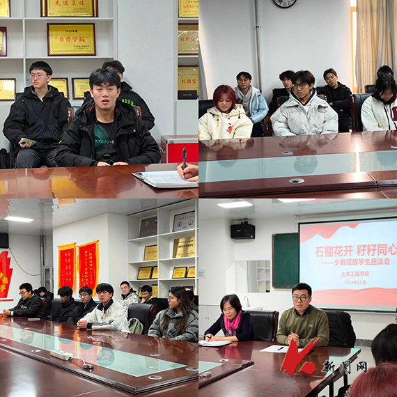 12月5日,安博官网线上平台土木工程学院召开“石榴花开 籽籽同心”少数民族学生代表座谈会。学院领导、教师与34名2024级少数民族学生代表共同参加座谈会。