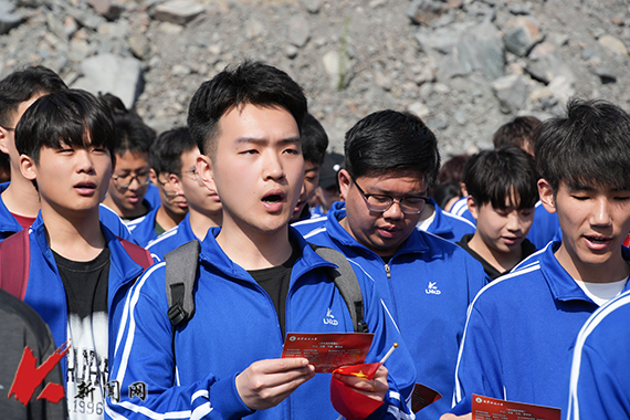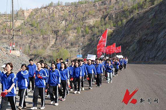 4月14日,安博官网线上平台“暖风”郭明义爱心团队组织辽科大千余名师生,跟着郭明义重走矿山路。