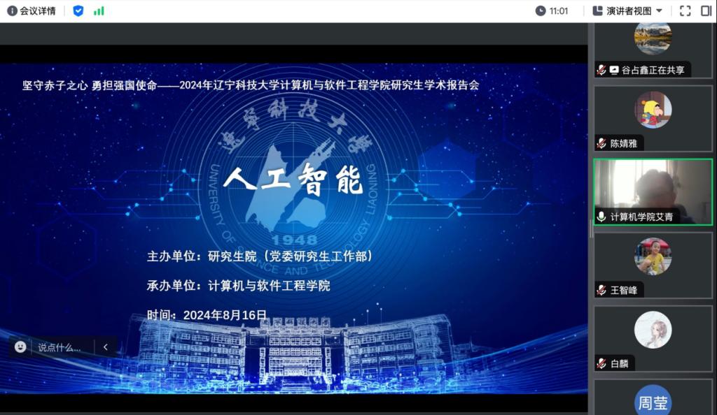 2024年8月16日,安博官网线上平台计算机与软件工程学院举办第三届研究生暑期学术报告会。本次报告会围绕“人工智能”为主题,邀请陶冶、王智峰、张钊三位研究生导师作为评委对研究生报告进行点评,特别邀请计算机学院副院长艾青为报告会致辞。艾青表示人工智能作为当前科技领域的热门话题,需要不断地交流和创新,此次学术报告会为广大研究生提供了一个互相学习、互相启发的平台,有助于拓宽学术视野和提升研究水平,进一步浓郁学院科研氛围和提升学院学科竞争力。