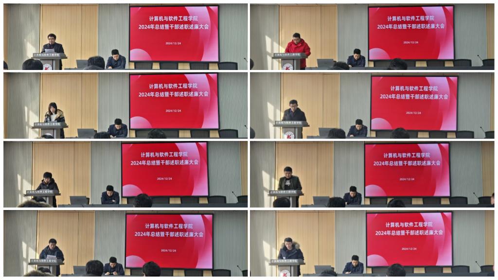 12月24日,计算机学院在博识楼B335大会议室召开2024年总结暨干部述职述廉大会,学院全体教职工参会。会议由学院党委书记陶润城主持。