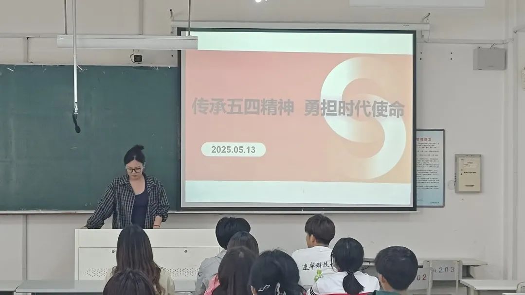 在“传承五四精神 勇担时代使命”主题班会上,辅导员结合“五四运动”以来中国青年为国家做出的卓越贡献,引导学生深刻理解五四精神在新时代的内涵与价值,激励学生勇担时代赋予的责任。