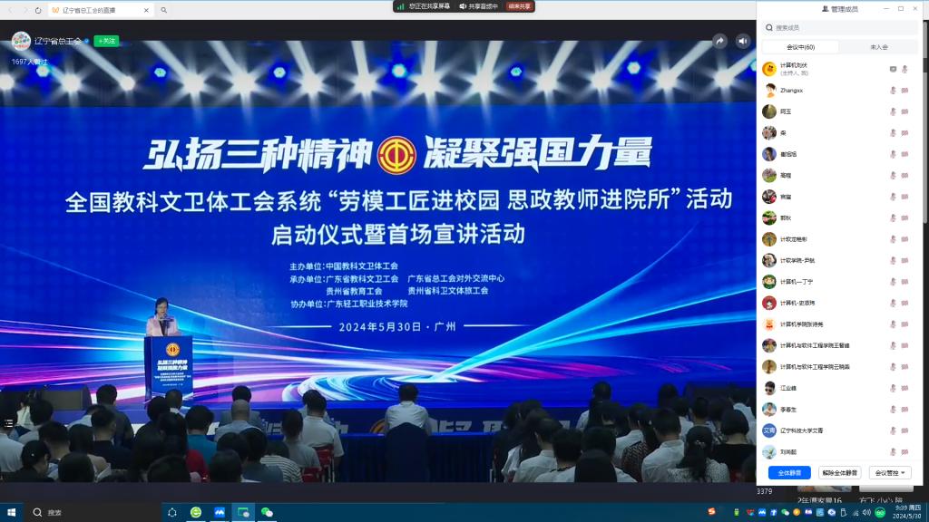 5月30日,学院工会组织观看全国教科文卫体工会系统“劳模工匠进校园 思政教师进院所”活动启动仪式暨首场宣讲活动,69名教职工参与。