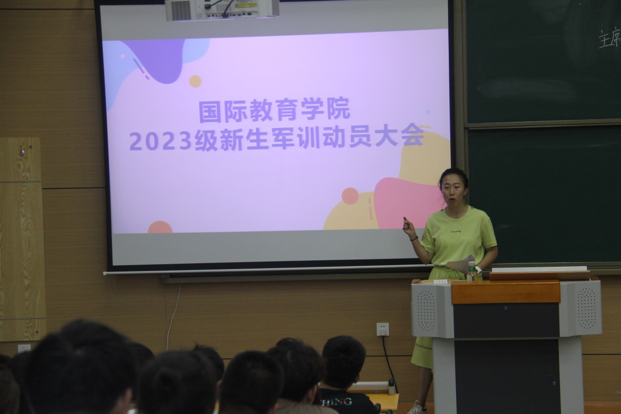 9月7日下午,国际教育学院在博智楼多媒体教室召开2023级新生军训动员大会,本次会议由辅导员张翀睿主持,2023级全体同学以及各位班导生参加本次会议。