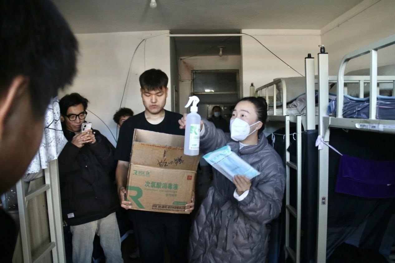 辽科大国际教育学院走访学生寝室,发放卫生消毒用品