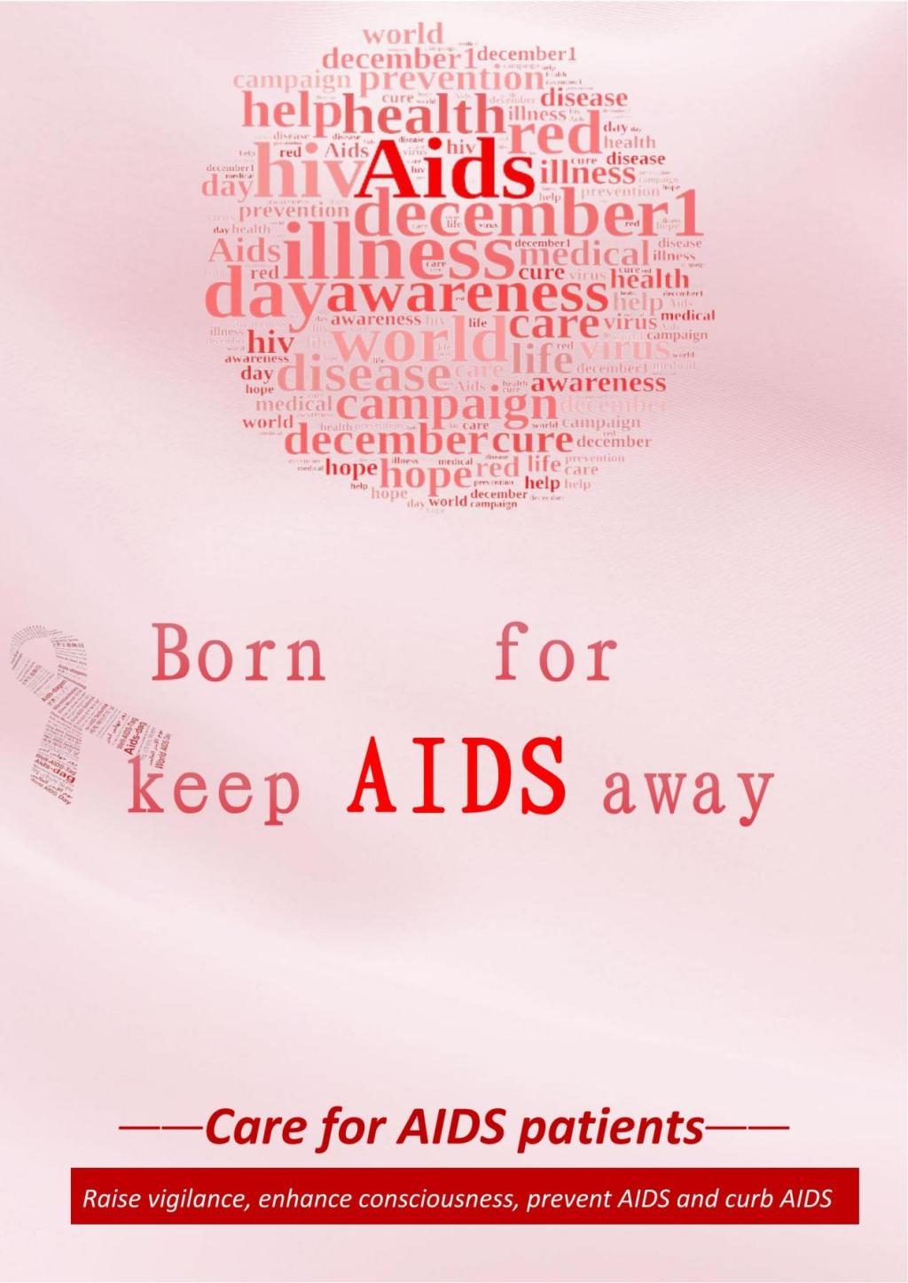 世界艾滋病日的标志是红丝带,红绸带像一条纽带,将世界人民紧紧联系在一起,共同抗击艾滋病。象征着大众对艾滋病病毒感染者和艾滋病病人的关心与支持;象征着我们对生命的热爱和对和平的渴望;象征着我们要用“心”来参与预防艾滋病的工作。