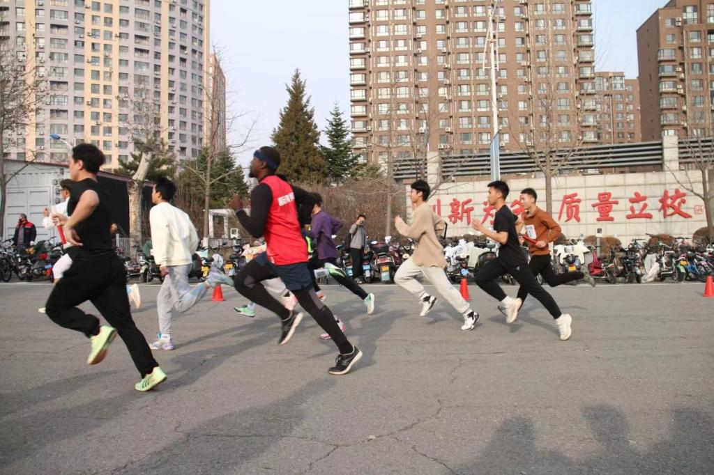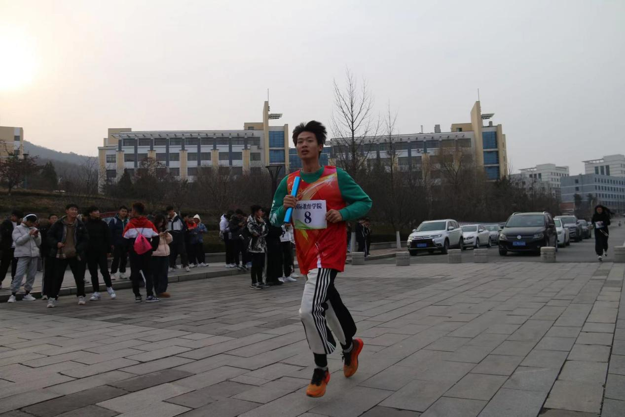 12月8日,安博官网线上平台在博雅广场开展一二·九长跑接力赛,国际教育学院运动员积极参与。