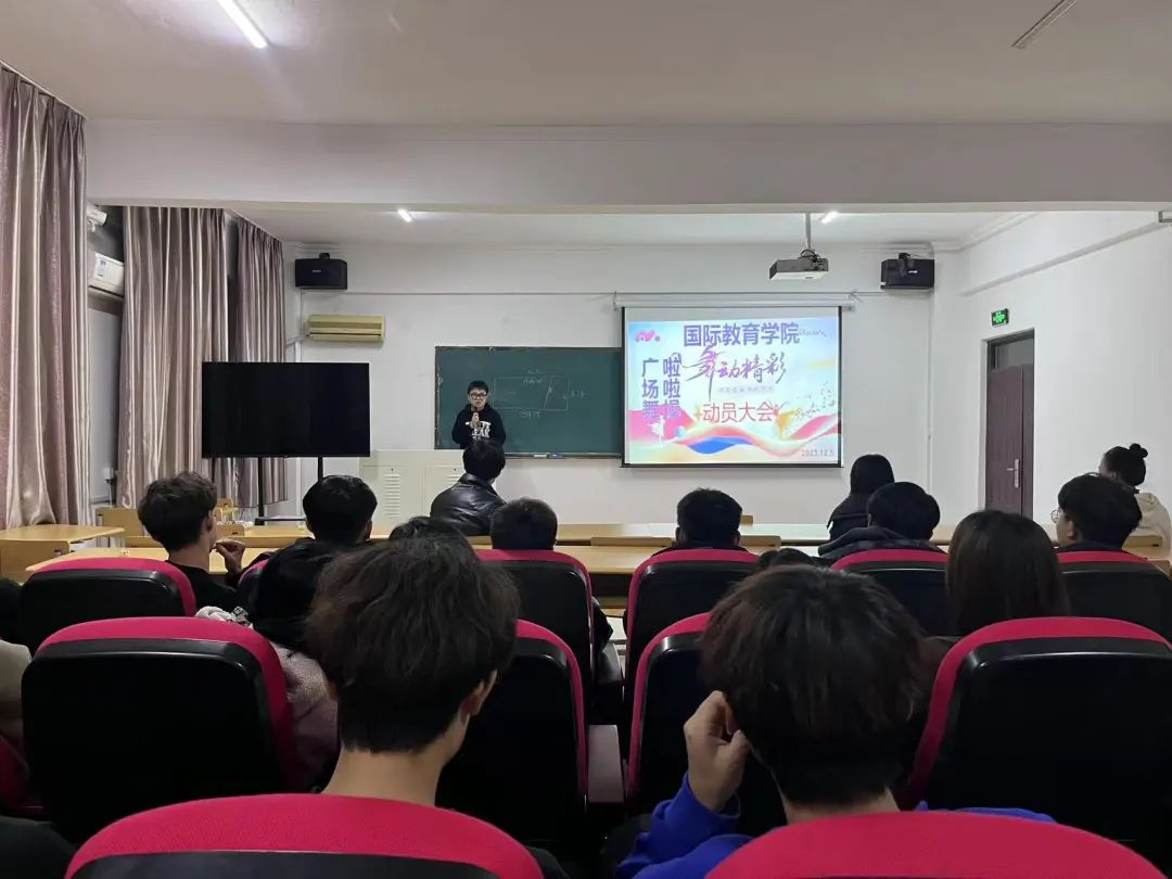 12月5日晚 ,国际教育学院于博远楼107教室召开了啦啦操比赛动员大会。国际教育学院辅导员张翀睿,学生会、分团委部分学生骨干及全体参赛队员参加本次会议。