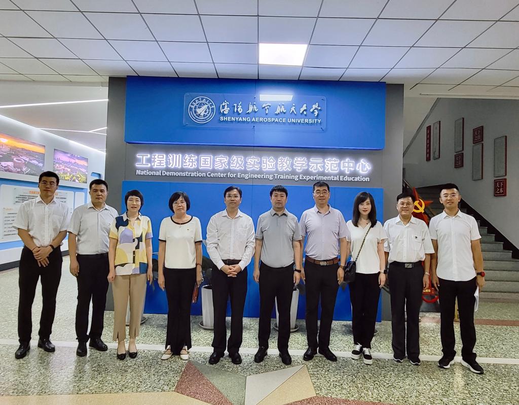在沈阳航空航天大学,走访调研成员受到学校党政负责同志的热情接待,在学校副校长张业伟的陪同下,先后参观了辽宁通用航空研究院、航空工程综合实训中心、工程训练中心,细致调研各单位构筑“大思政”格局,将科学报国、科技强国融入教育教学、科研实践全过程的思路和途径。工程训练中心传承学校“赓续红色血脉,厚植蓝色情怀”发展理念,依托红、蓝、橙三色打造党史学习教育、航天航空发展历程教育、主题教育三个实践教学基地的创新举措成效显著,一行人与中心负责同志深入交流,详细了解中心构建的“123456”党建工作体系,并观看了学生们将红色血脉与实习实践结合后完成的创意作品;之后专程前往学校“一站式”大学生智慧服务社区建设现场,围绕智慧社区建设、职能板块划分、学生服务模式等进行互动研讨。