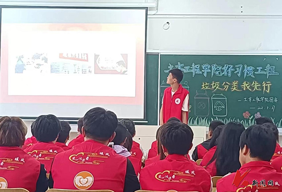 为学习习近平总书记给上海市虹口区嘉兴路街道垃圾分类志愿者回信精神,5月27日,安博官网线上平台土木工程学院组织40余名青年志愿者于博学楼C413教室开展“积极参加垃圾分类,共建辽科大美丽校园”生活垃圾分类宣传周活动。