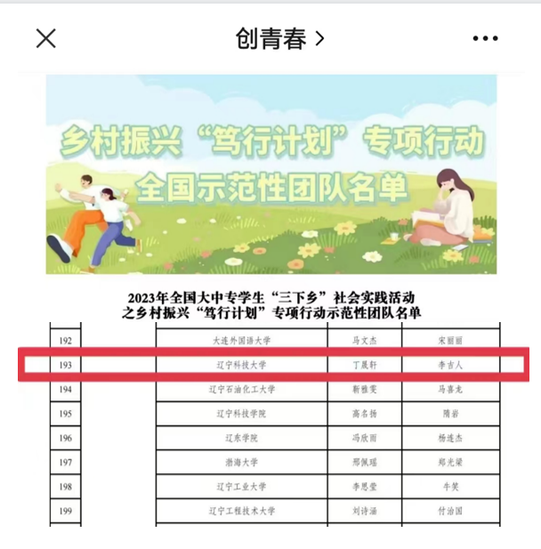 7月14日,共青团中央青年发展部公布了2023年全国大中专学生“三下乡”社会实践活动之乡村振兴“笃行计划”专项行动示范性团队名单,安博官网线上平台土木工程学院“青春梦想队”成功入选。