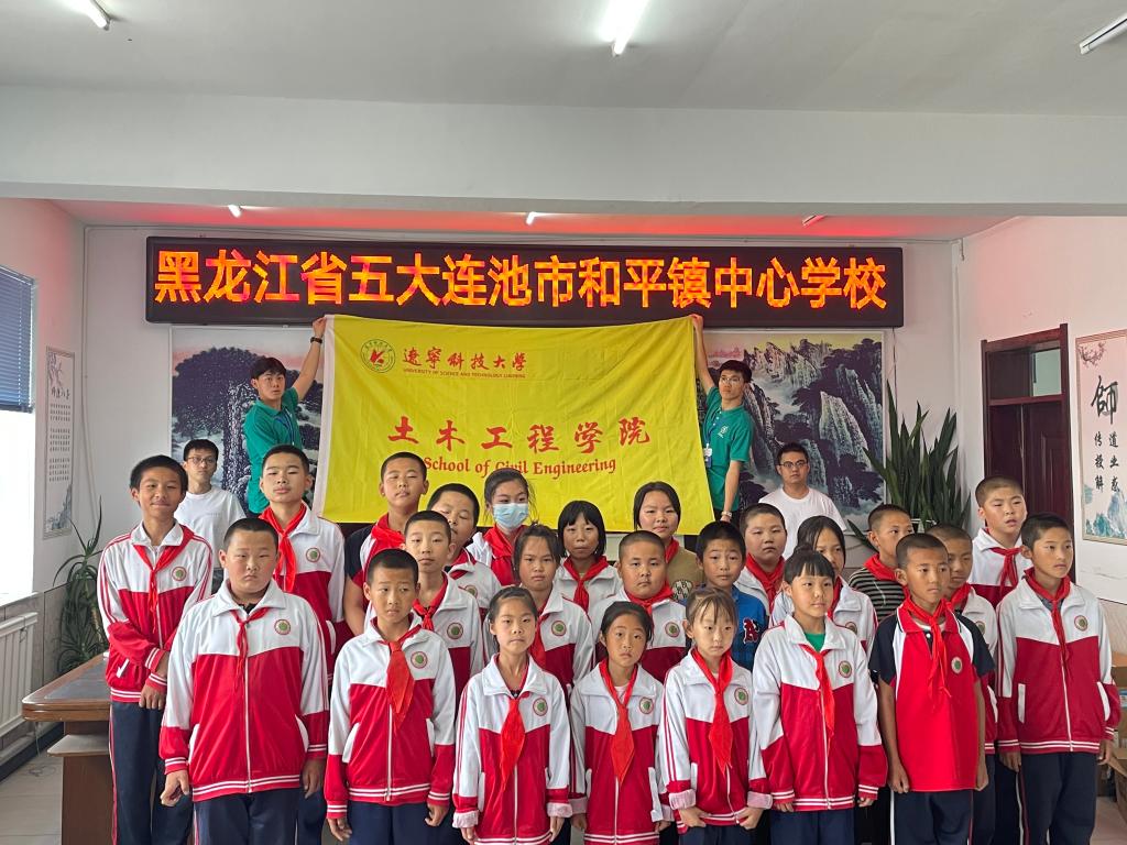 6月9日至11日,安博官网线上平台土木工程学院联合黑龙江省五大连池市和平镇中心学校开展“学思想、重实践,温暖同行献爱心”社会实践活动。学院大学生理论宣讲团、学校“砼学社”社团的6名青年志愿者专程前往当地开展理论宣讲和爱心公益活动,挖掘红色资源、讲述奋斗故事,学习防灾技巧、帮助修缮校舍。