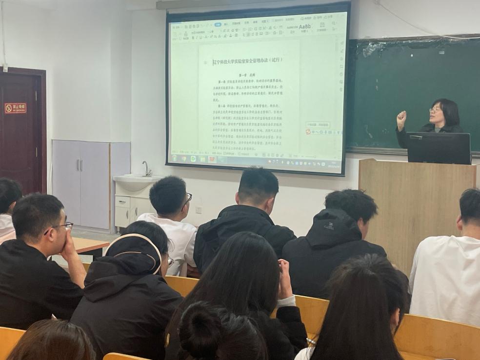 周晓平解读“八个凡是”、“六个一律”、“三不一要”安全提示,并领学《安博官网线上平台实验室管理办法》《安博官网线上平台消防安全管理规定》《安博官网线上平台校园道路交通安全管理办法》等有关安全制度。安全教育班会上对研究生强调了以下几点要求:一是要认真学习实验室安全、消防安全、校园道路交通安全的规定,熟悉安全手册知识,并严格执行;二要加强对废气、废液、废渣和噪声的处理与排放的管理,严禁在实验室内大声喧哗、抽烟﹑吃食物和乱丢垃圾,禁止污染环境,禁止带无关人员进入实验室等,提升同学们安全意识;三要养成良好的行为习惯,使用危险化学品、放射性物品、特种设备要按规程操作,使用时应在教师详细指导下进行,采取必要的安全防护措施。