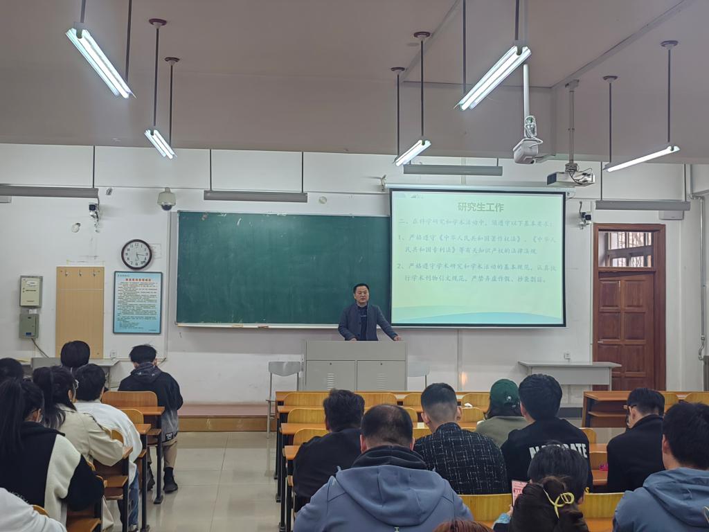 3月28日,在博学楼A107土木学院组织开展研究生学术道德规范与管理教育大会,学院2021、2022级研究生参加,会议由周晓平书记主持,张铁志副院长做题为“研究生学术道德规范与管理”报告。