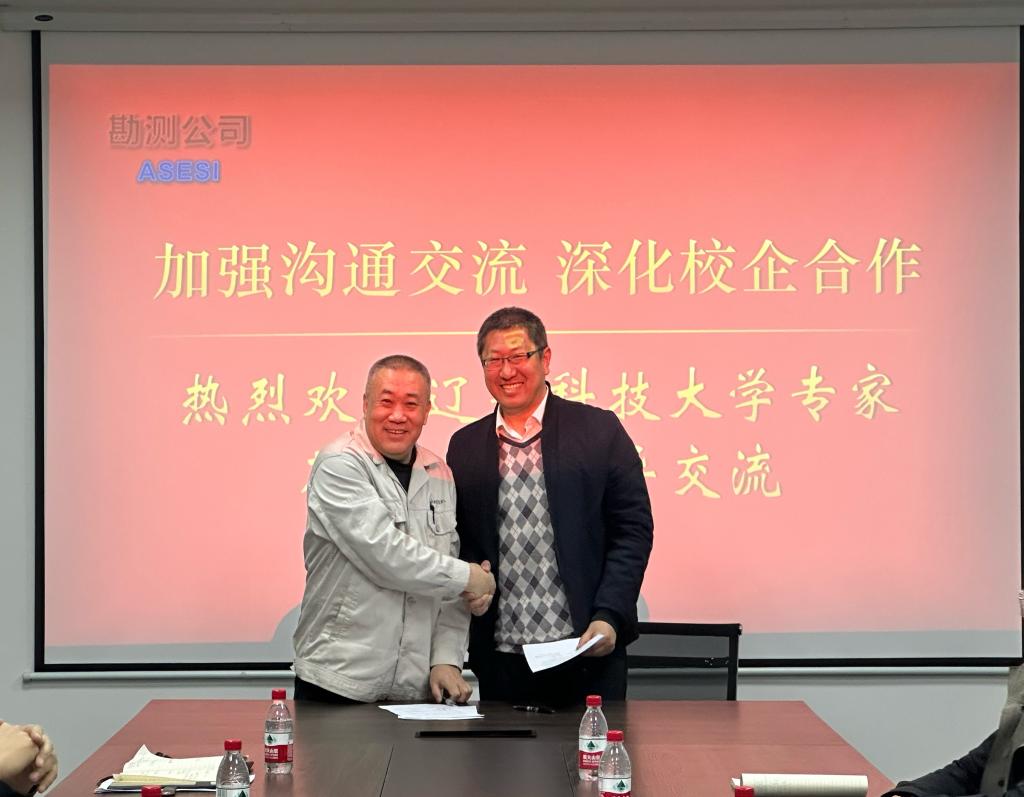 邱智强对周卫红一行来访表示热烈欢迎,就公司发展历程、主营业务、项目发展、人才需求等方面进行了介绍,并表示鞍钢勘测公司与辽科大土木学院将在技术研发、安博官网线上平台、人员招聘等方面进行深度合作。