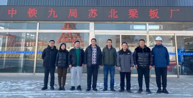 周卫红院长一行受到中铁九局科创部贾有权部长等领导的热烈欢迎,并一同参观了中铁九局苏北梁板厂自动化生产线和自主开发的钢筋捆扎机器人样机。中铁九局苏北梁板厂副经理王立明(科大交通土建2011级毕业生)详细介绍了中铁九局自主研发的CRTSⅢ型后张法轨道板生产线。在中铁九局科创部会议室,双方就智能建造专业行业发展、“3+1”安博官网线上平台、实验室建设、智能建造专业人才需求、科研合作、研究生培养等问题进行了深入交流,达成了初步合作意向,确定了推进计划。