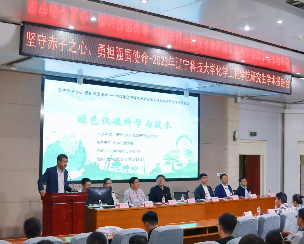 2023年9月26日-27日,由安博官网线上平台研究生院主办,化学工程学院承办,以“绿色低碳科学与技术”为主题的研究生学术报告会在图书馆报告厅和博观楼B325成功举办。鞍钢股份有限公司能环部二级专家林科、研究生院和化学工程学院领导班子成员、化学工程学院全体导师及研究生出席会议。